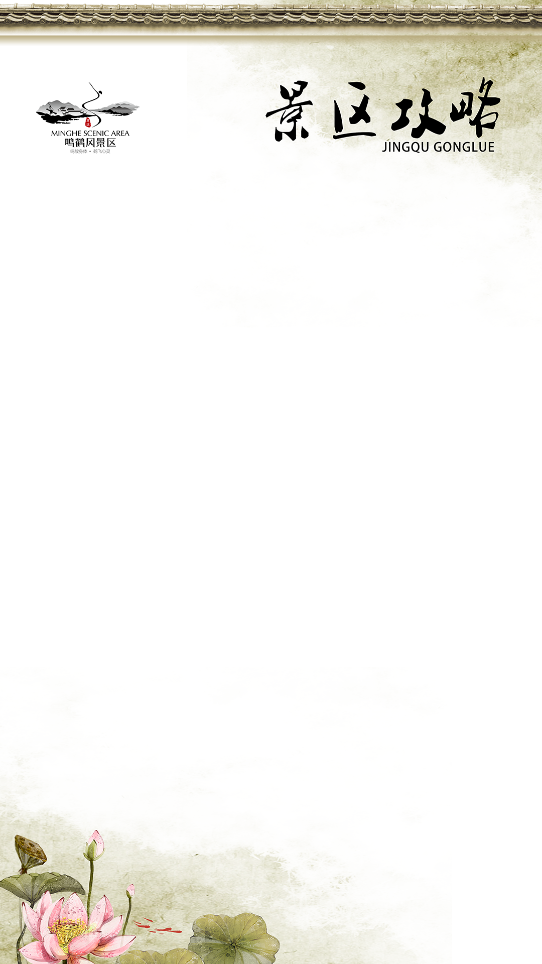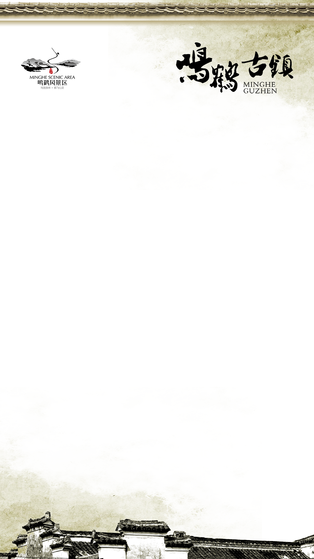 With three mountains and two lakes embracing it, there lies the town of Minghe, with a mountain resembling the wings of a crane, named after the symbol of longevity and peace. During the reign of Emperor Jinglong in the Tang dynasty, Yu Jiugao relocated his family to the foot of the mountain and was impressed with the feng shui of Minghe's landscape overlooking the lake. Being a descendant of the Du Lake Yu family who was proficient in studying the Book of Changes and divination, Yu Jiugao used the crane's shape to construct the outline of the ancient town, emphasizing his belief that cranes prefer to settle near mountains and water. With the change of dynasties, Minghe gradually expanded and connected the Upper Street, Middle Street, and Lower Street through seven bridges. The crane's head begins at the steep slope of the first Tangtang Bridge, with its neck resembling the long street, the upper and middle streets as its body, and its wings spreading over the twin peaks of Minghe Mountain, with Yue Temple River and Erfang River as its feet, appearing like an elegant and graceful crane.